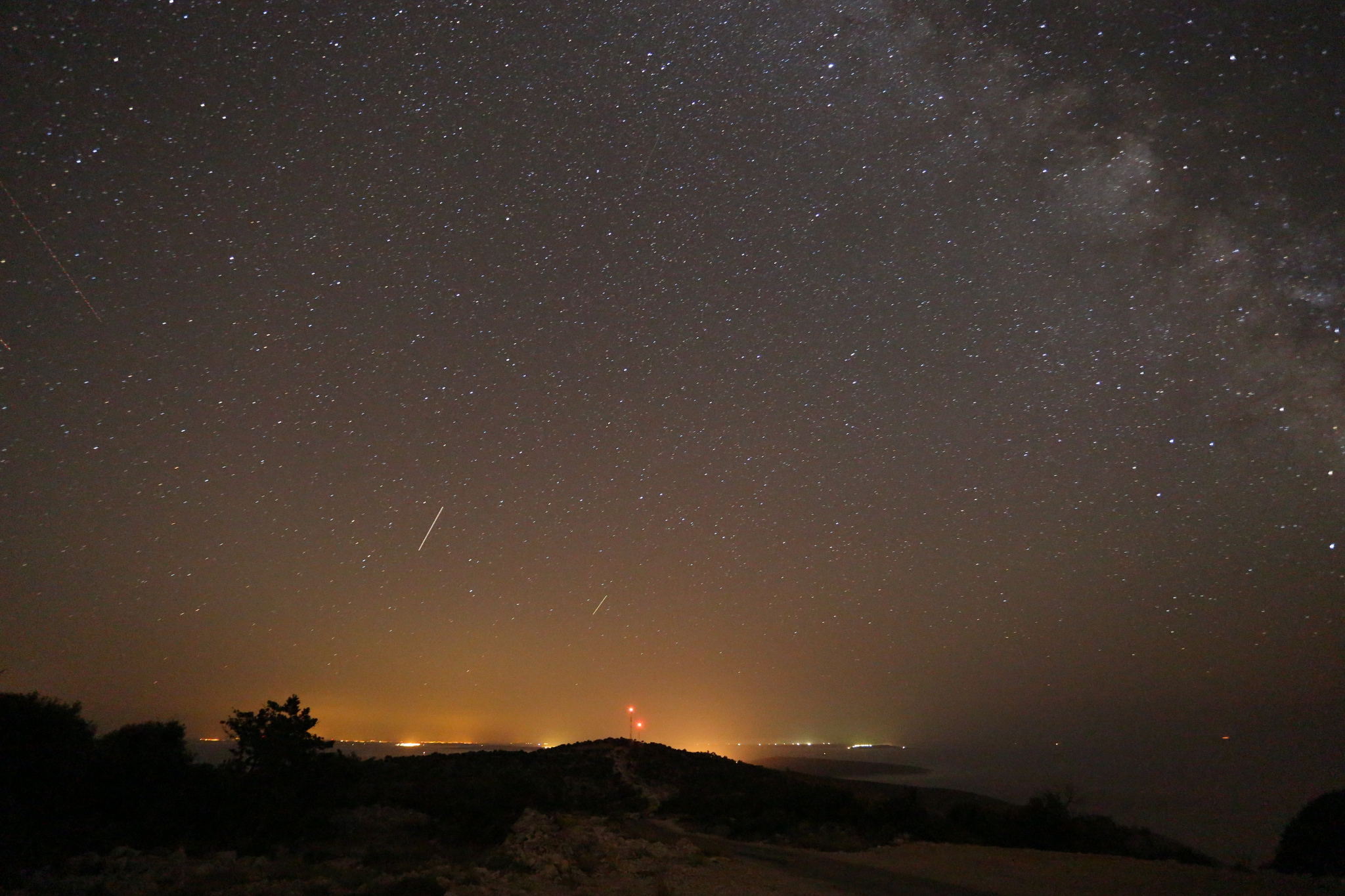 Fotografija svjetlosne kape koju proizvodi rasvjeta na otoku Iloviku snimljena na južnom dijelu otoka u blizini vrha Pogled 2015.